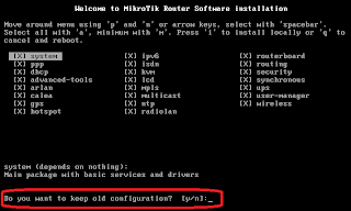 1. Saya asumsikan anda telah mendownload file iso mikrotik yang bisa anda dapatkan di situs resmi mikrotik dan memburningnya ke CD.